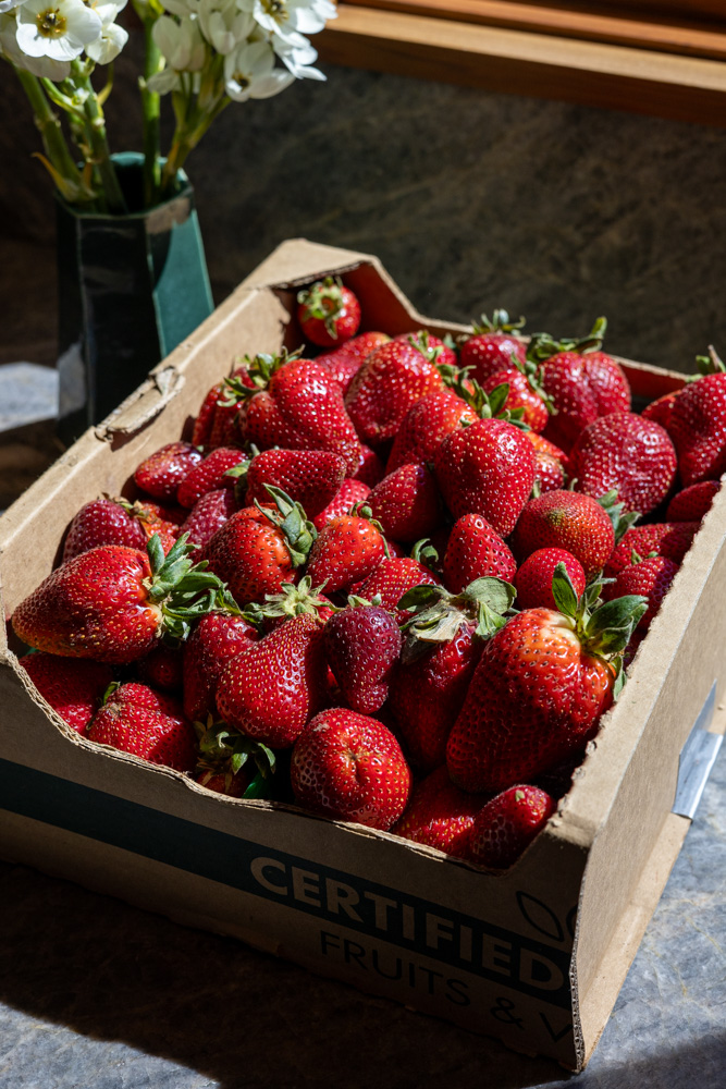 - 1 pound of fresh hulled and sliced strawberries 16 oz
